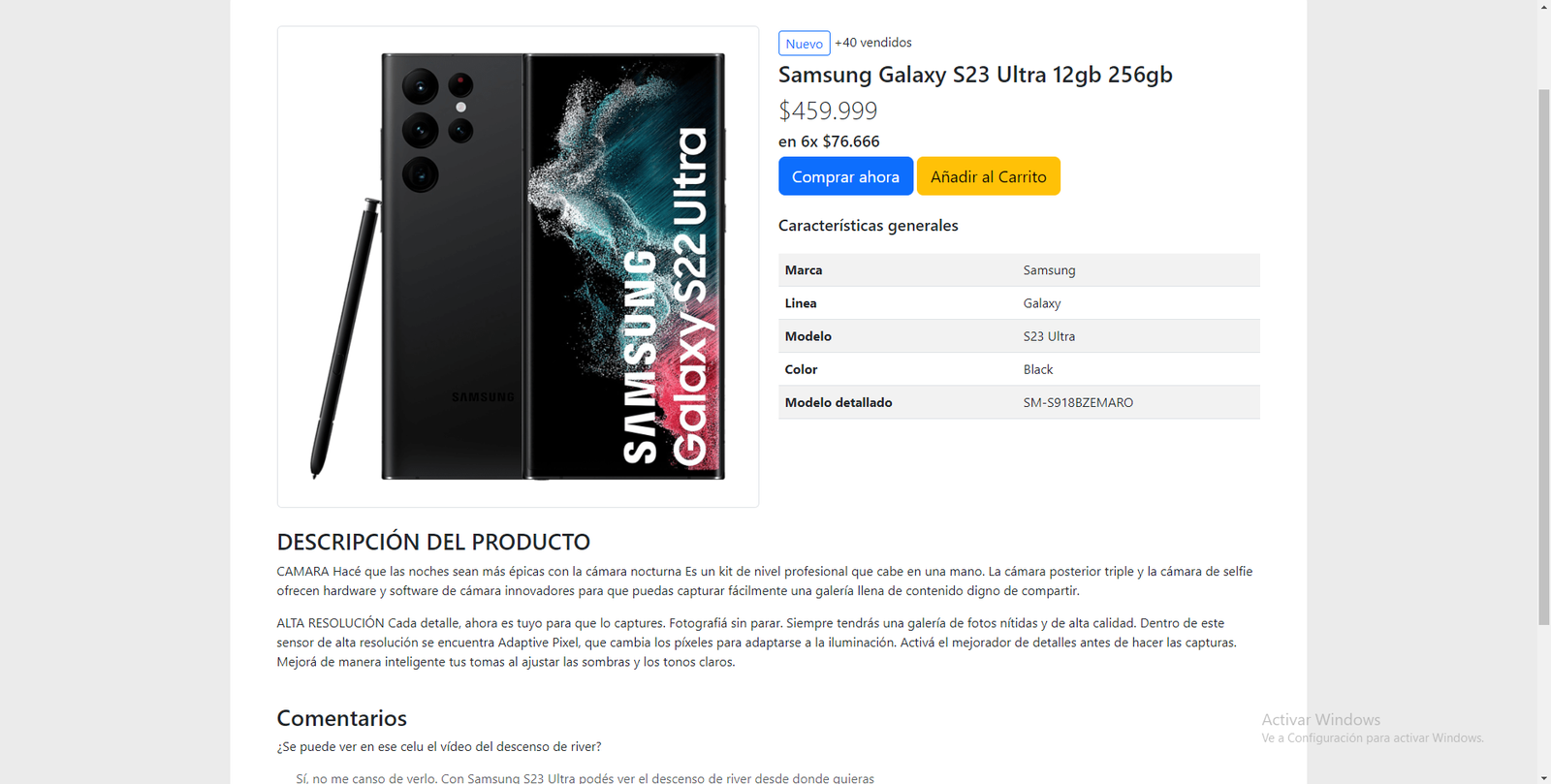 En un trabajo grupal realizado como parte de RollingCode School, utilicé metodología ágil SCRUM para organizar y gestionar eficientemente las tareas del equipo. Mi principal responsabilidad fue desarrollar la página de visualización de productos, diseñada para ofrecer una experiencia de usuario excepcional. Este componente incluye una presentación detallada de todas las propiedades del producto y una sección interactiva para comentarios. El diseño, que prioriza la estética profesional y moderna, fue cuidadosamente elaborado para garantizar una apariencia elegante y atractiva, destacando por su usabilidad y atención al detalle. Este proyecto no solo cumplió con los objetivos planteados, sino que también fue muy valorado por su diseño visual impactante y funcionalidad intuitiva.